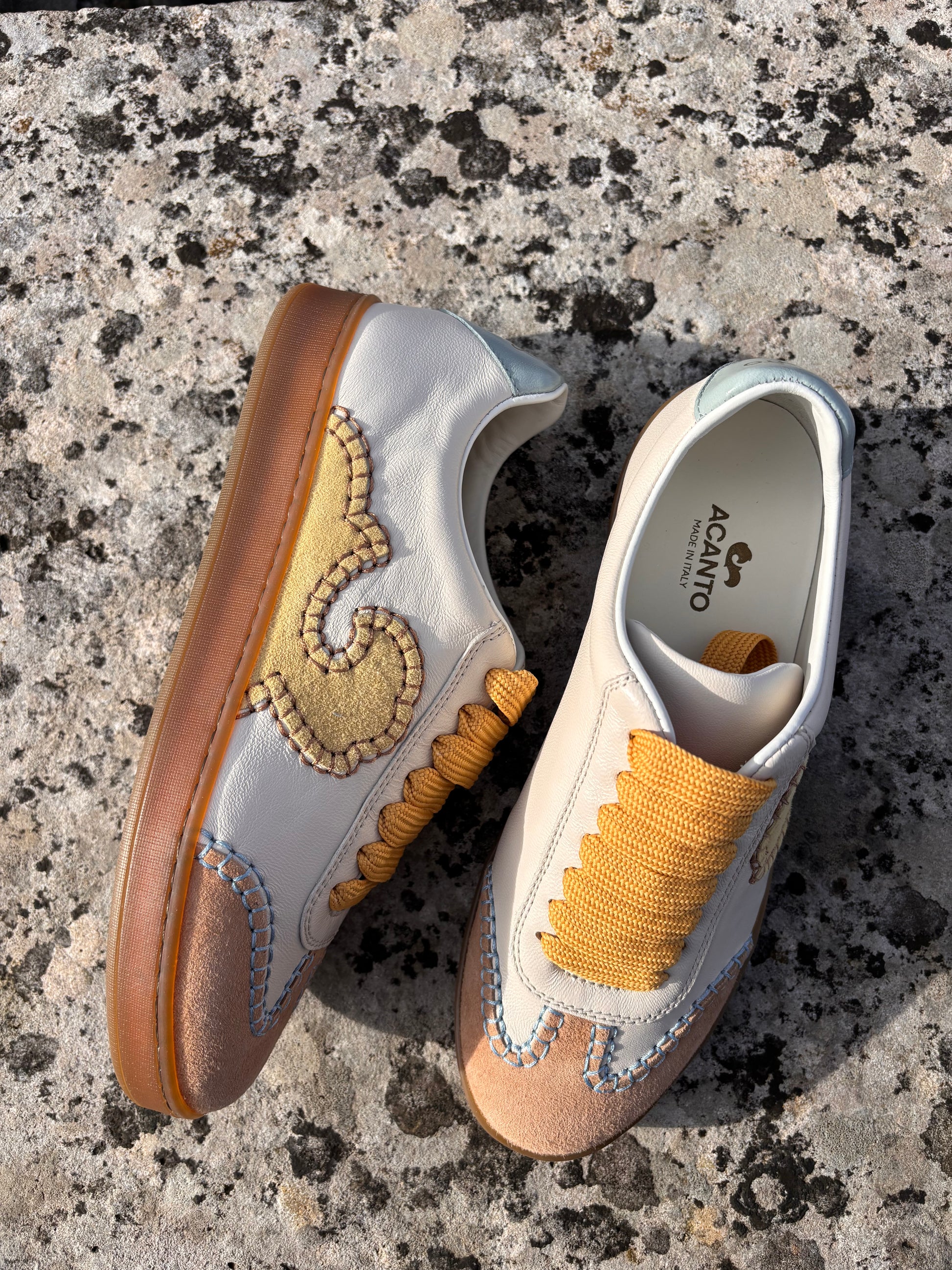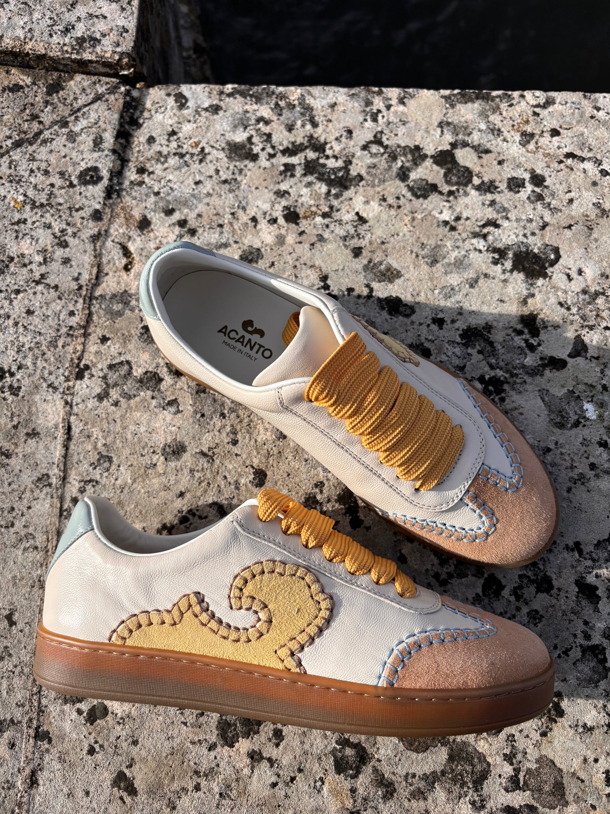 Une sneaker au charme authentique, capable d'exprimer l'âme la plus précieuse de la famille Acanto. Existe également en rose ivoire.