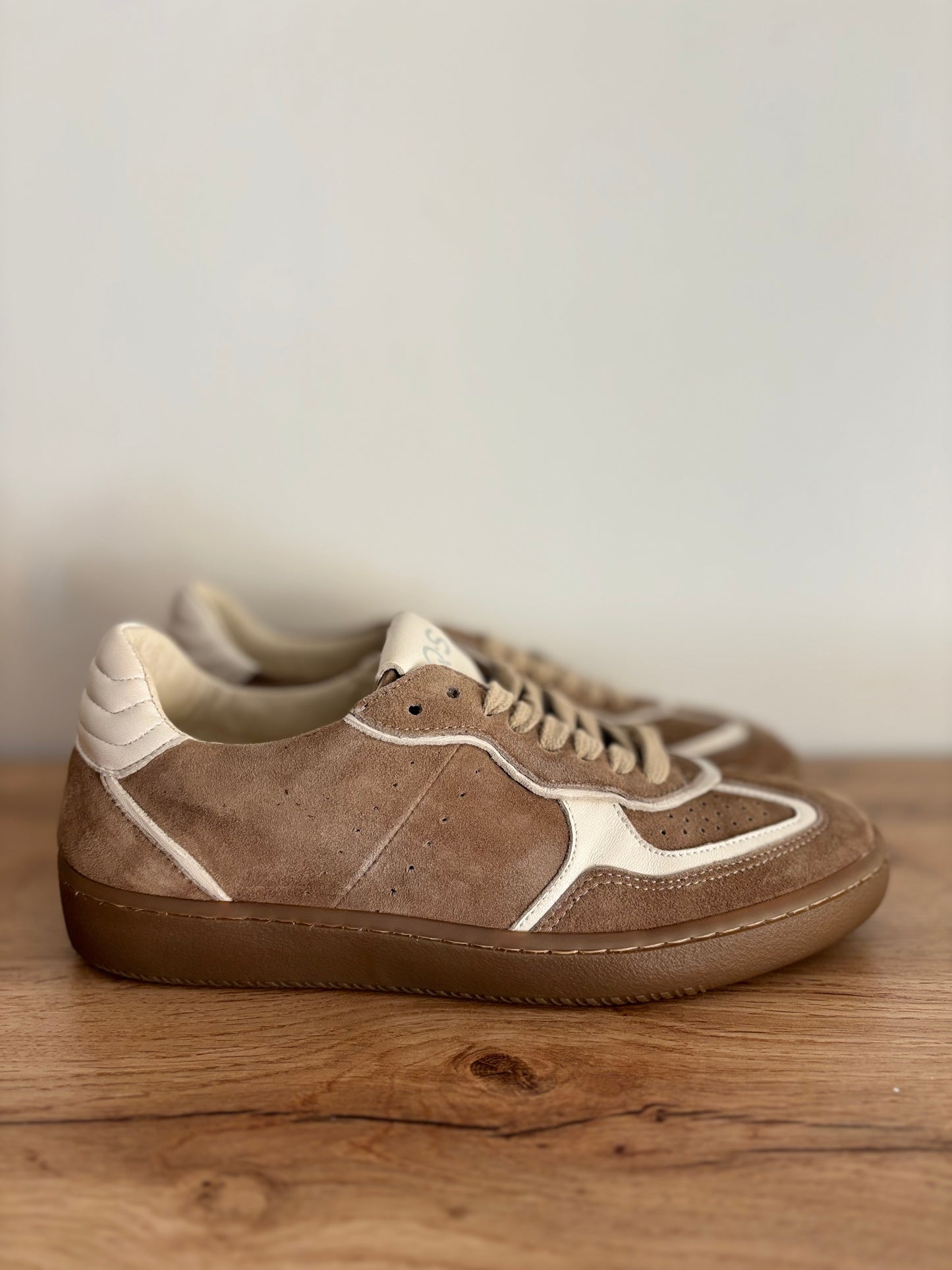 Baskets ATHENA en cuir velours taupe/off white de REQINS.