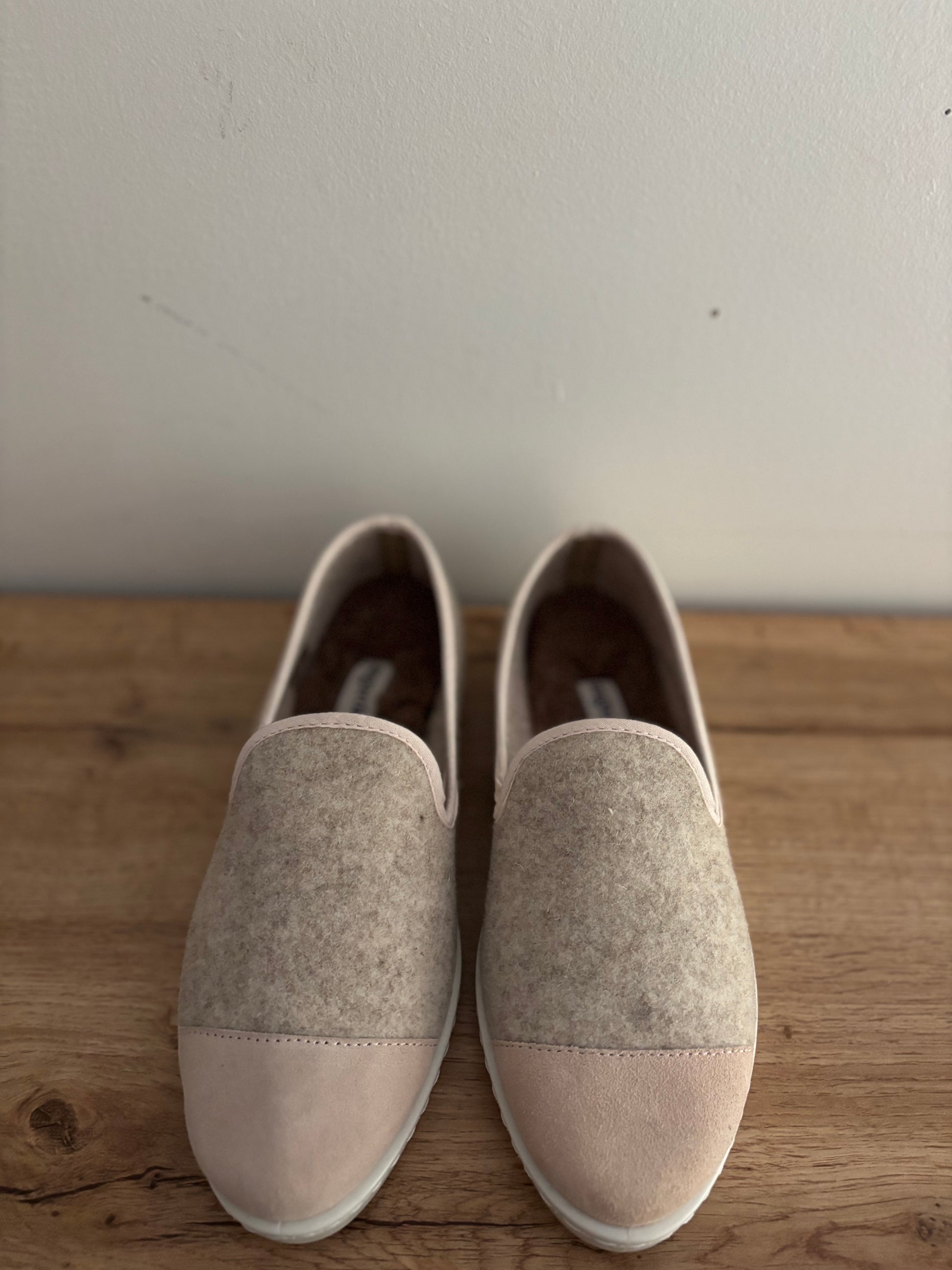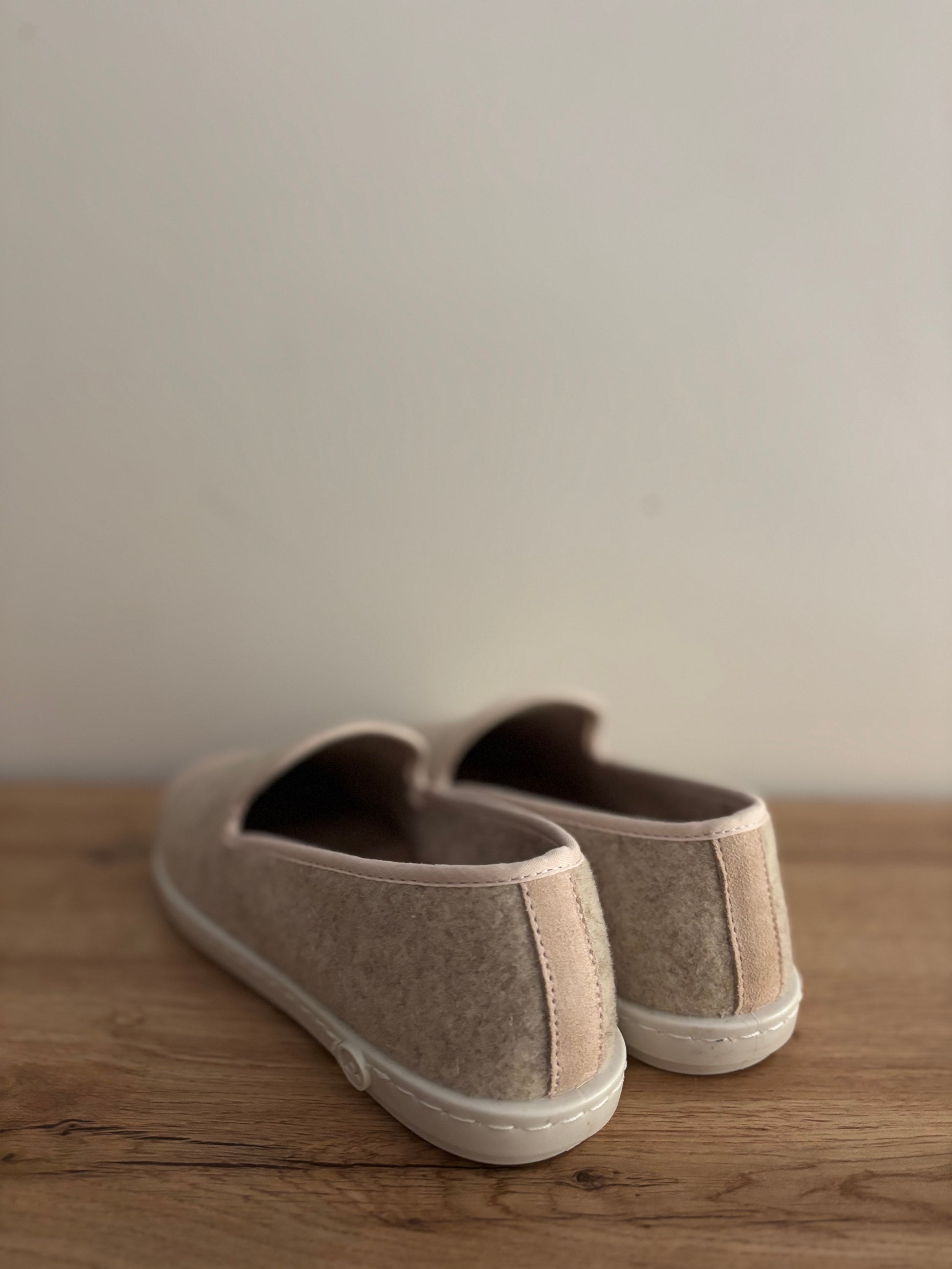Chausson en laine recyclée beige et rose poudré de ANGARDE.
