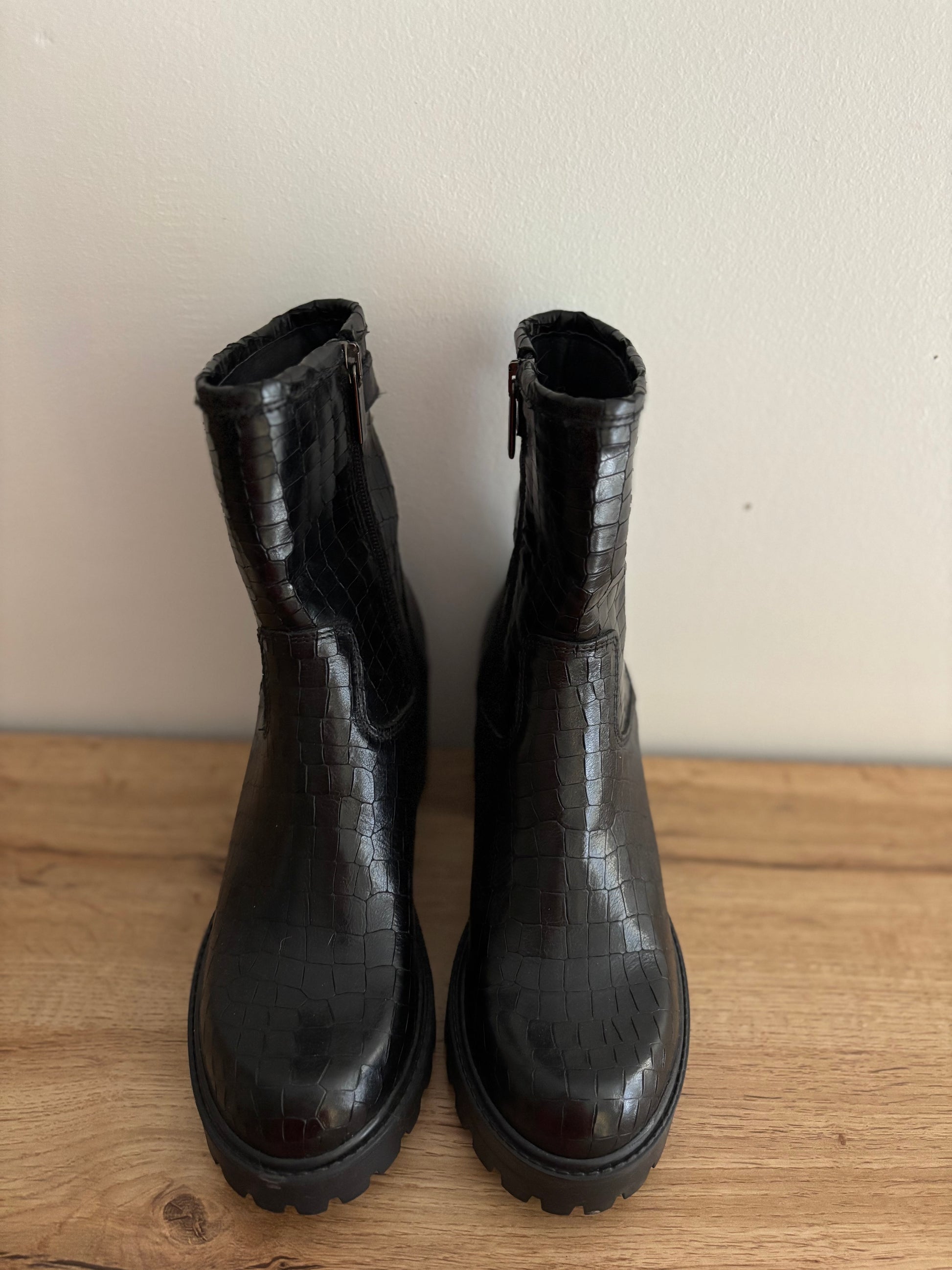 Bottines CILDA en cuir noir façon croco de Spaziozer08.