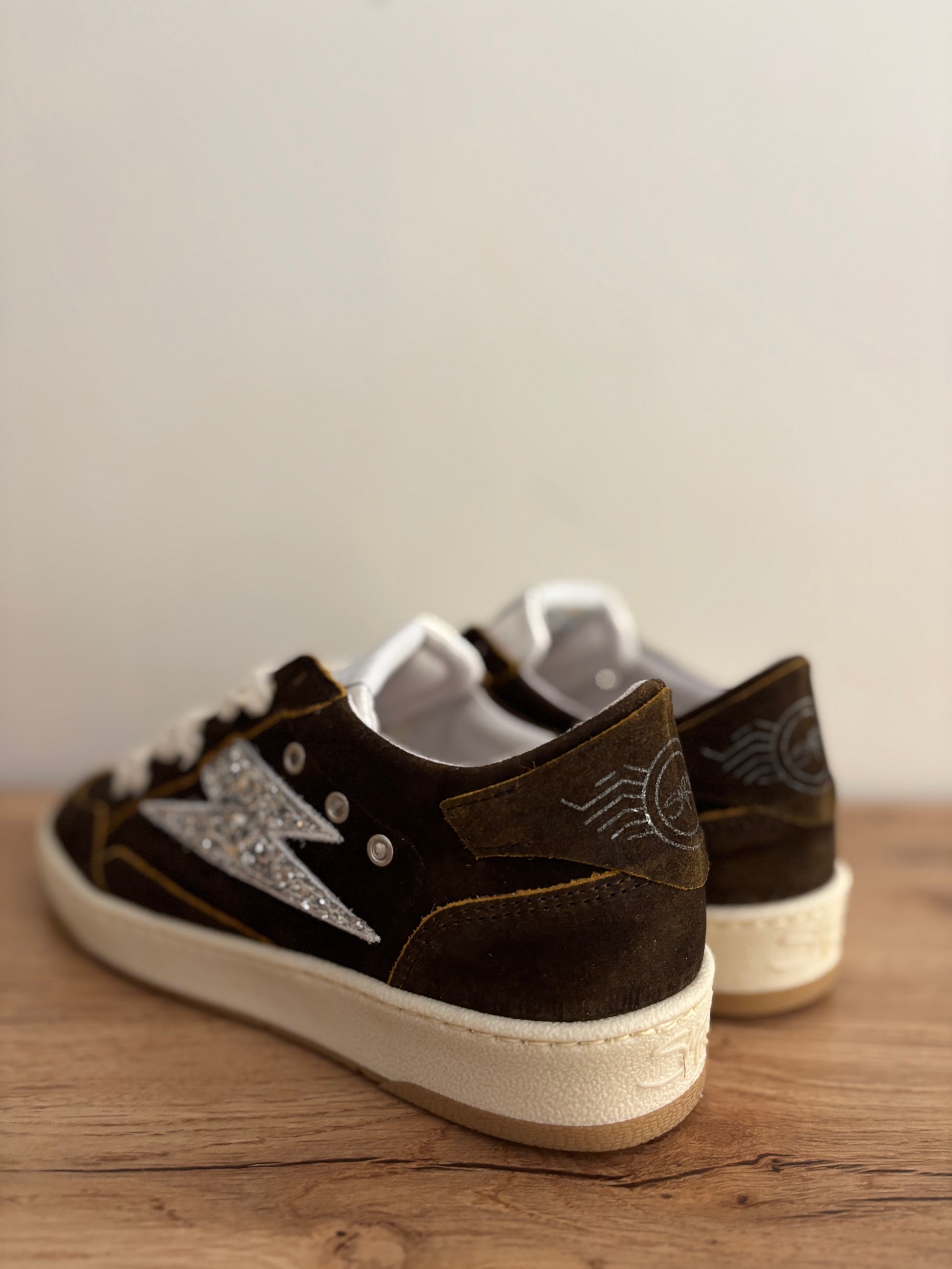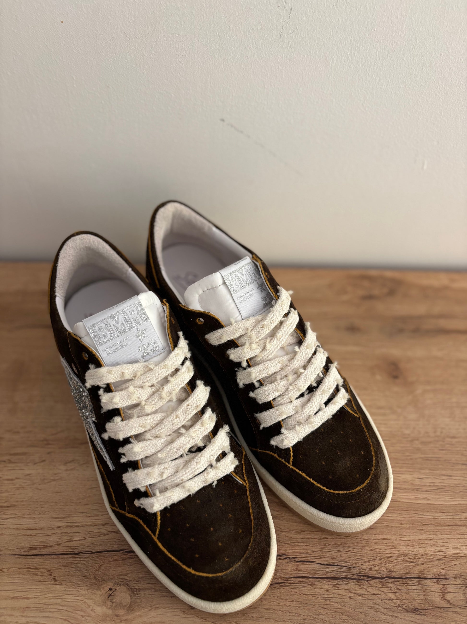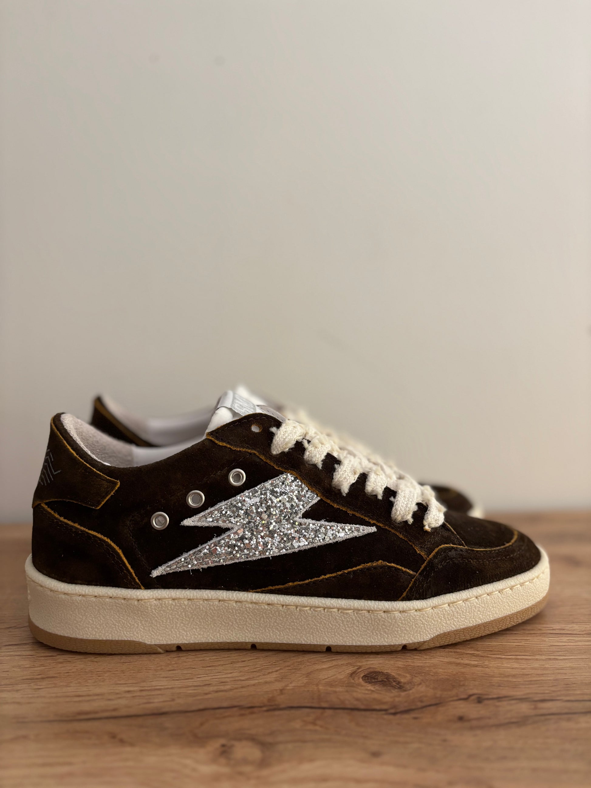Baskets DANY C341 en cuir brun et paillettes argent de SEMERDJIAN