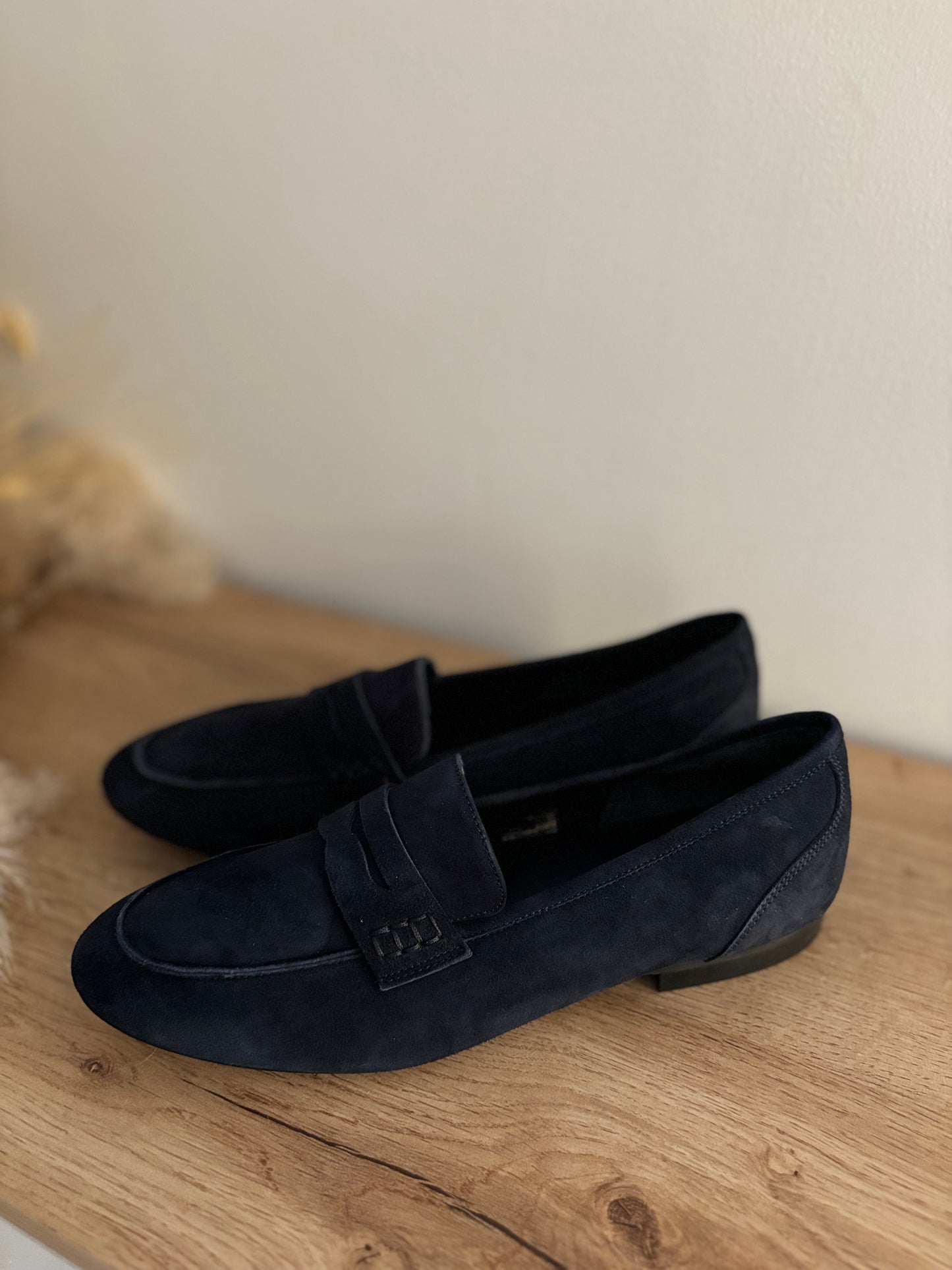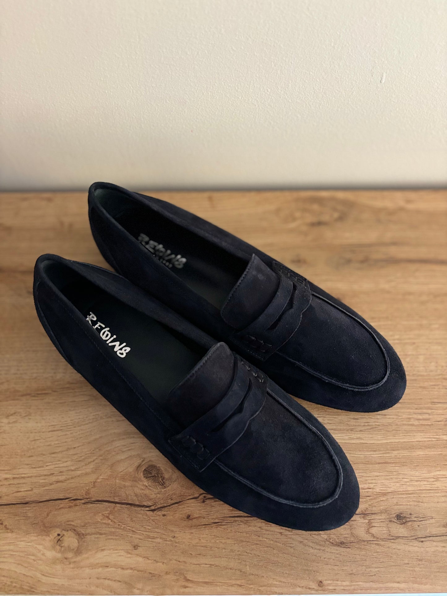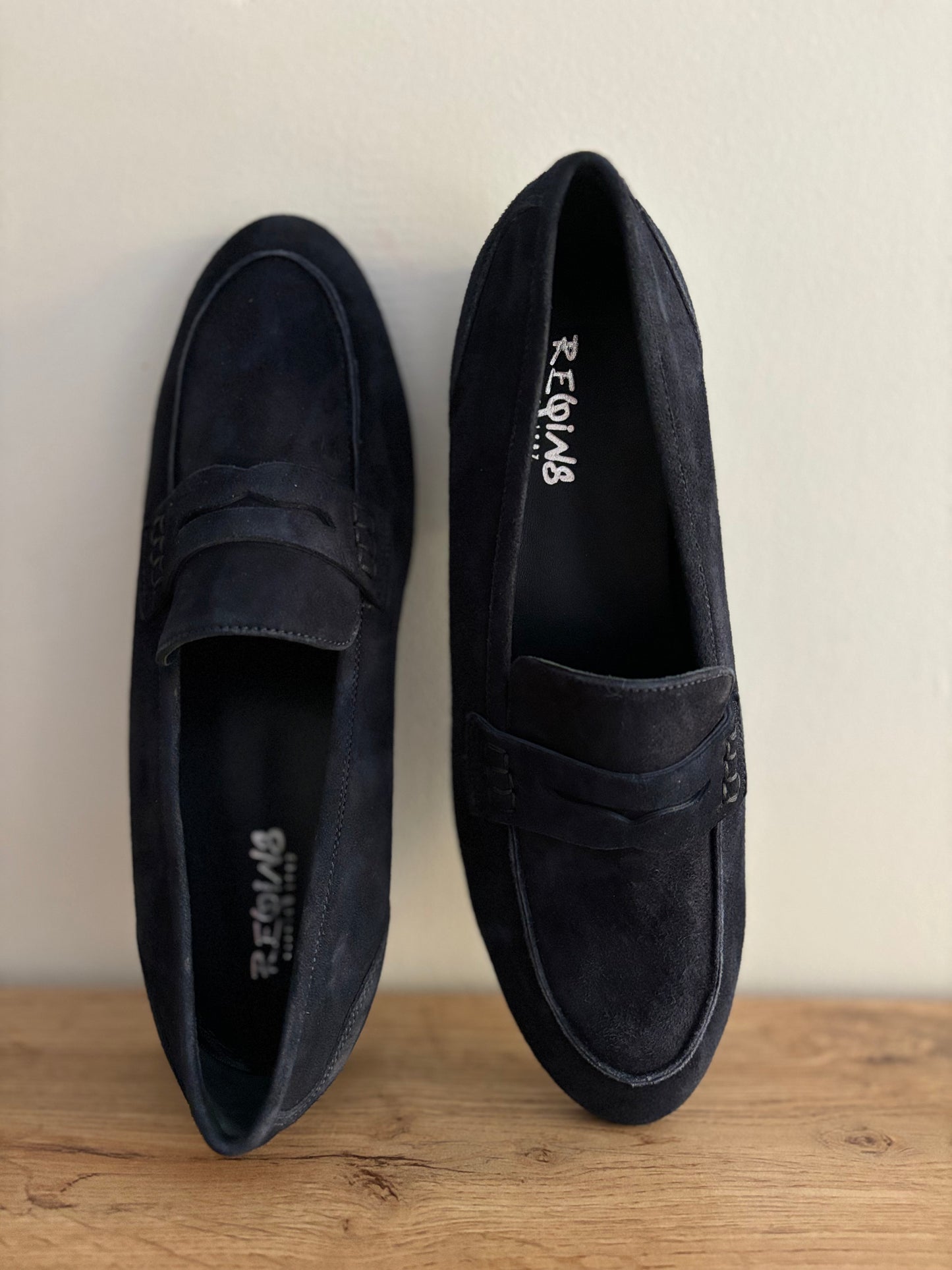 Mocassins FAUSTINE en peau bleu nuit de REQINS.