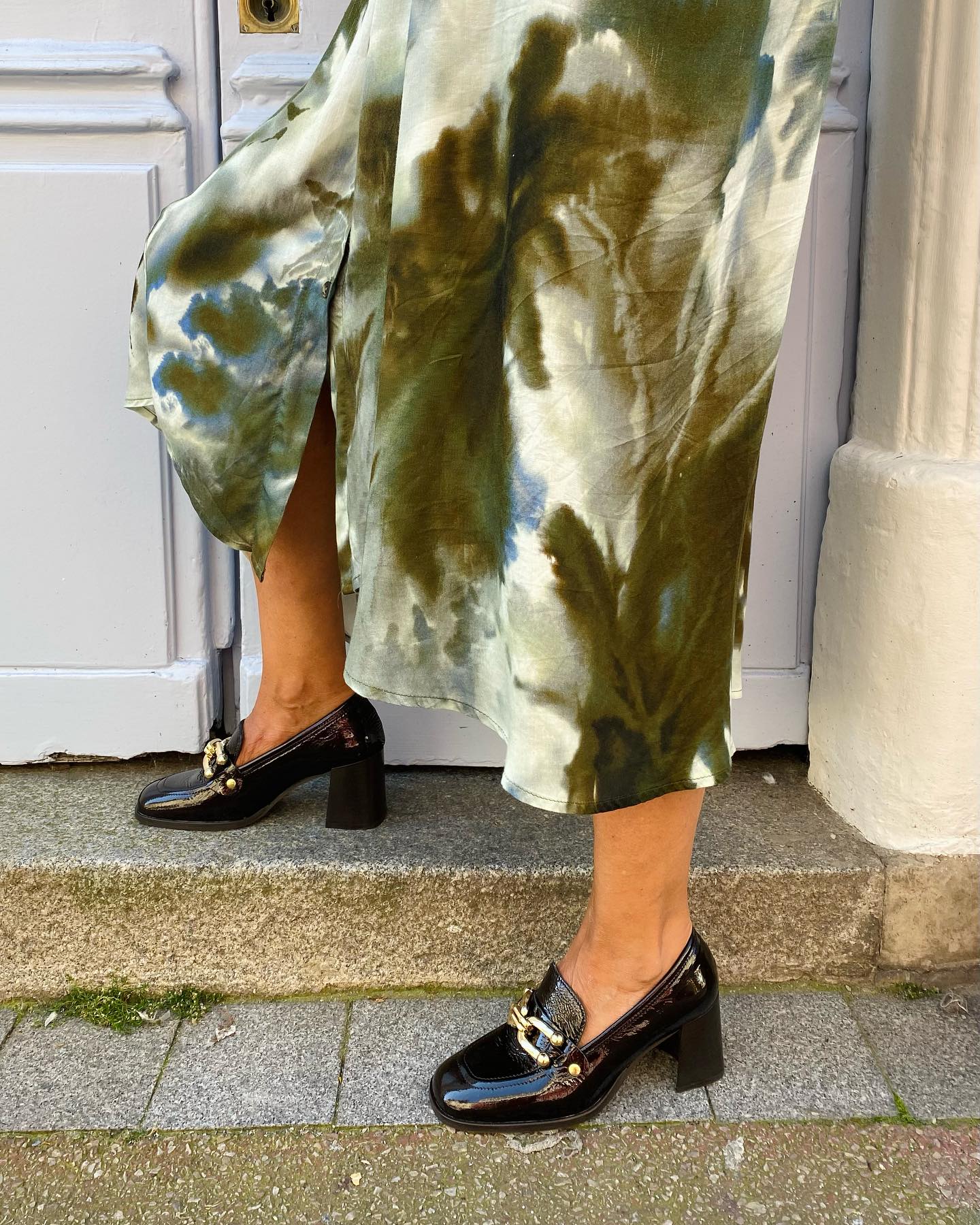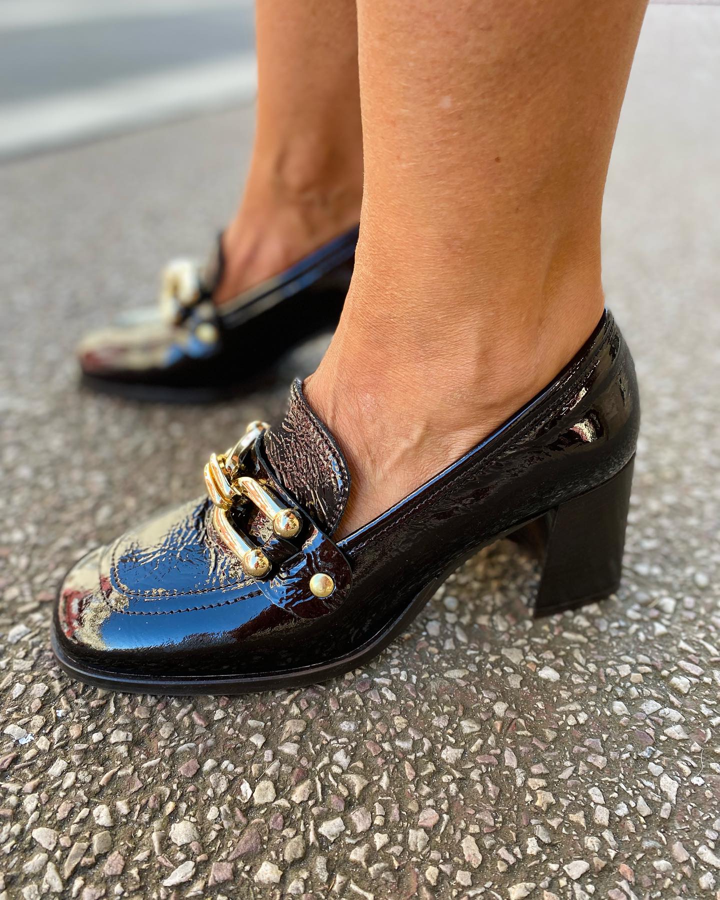 Ce mocassin vous séduirons avec sa patte interchangeable avec ou sans le bijoux doré. La souplesse du cuir vernis vous offrira tout le confort dont vous avez besoin. Disponible en cuir vernis bordeaux et cuir vernis chocolat avec un talon plus haut.