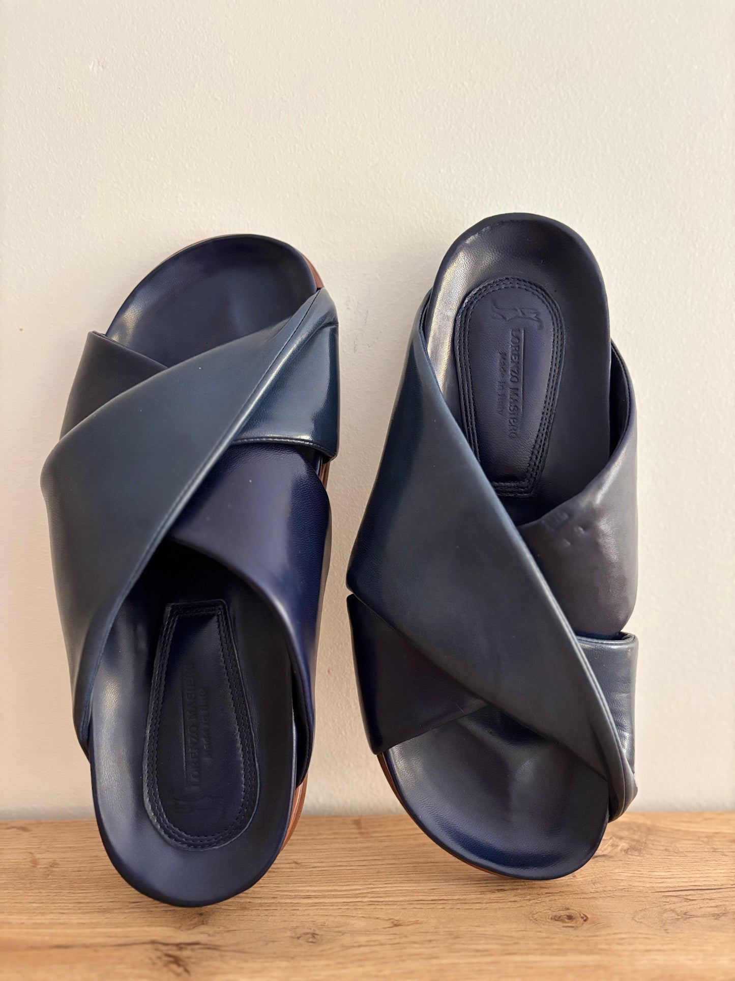Mûle GIGLIO TIDAL en cuir nappa bleu de Lorenzo Masiero.