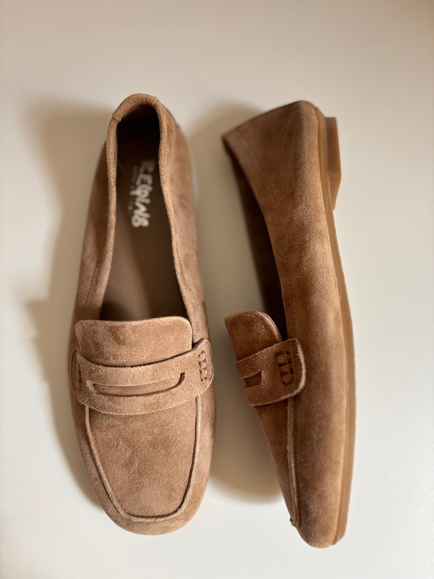 Ce mocassins style collège en cuirs velours avec son bout carré est un modèle intemporel. Existe également en peau gazon.