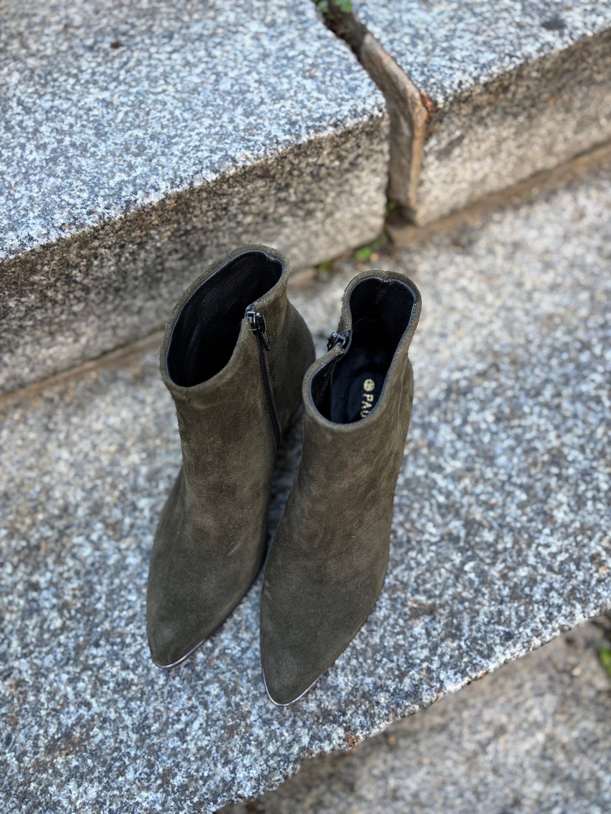Bottines HOLLY en cuir velours kaki de PAOYAMA.