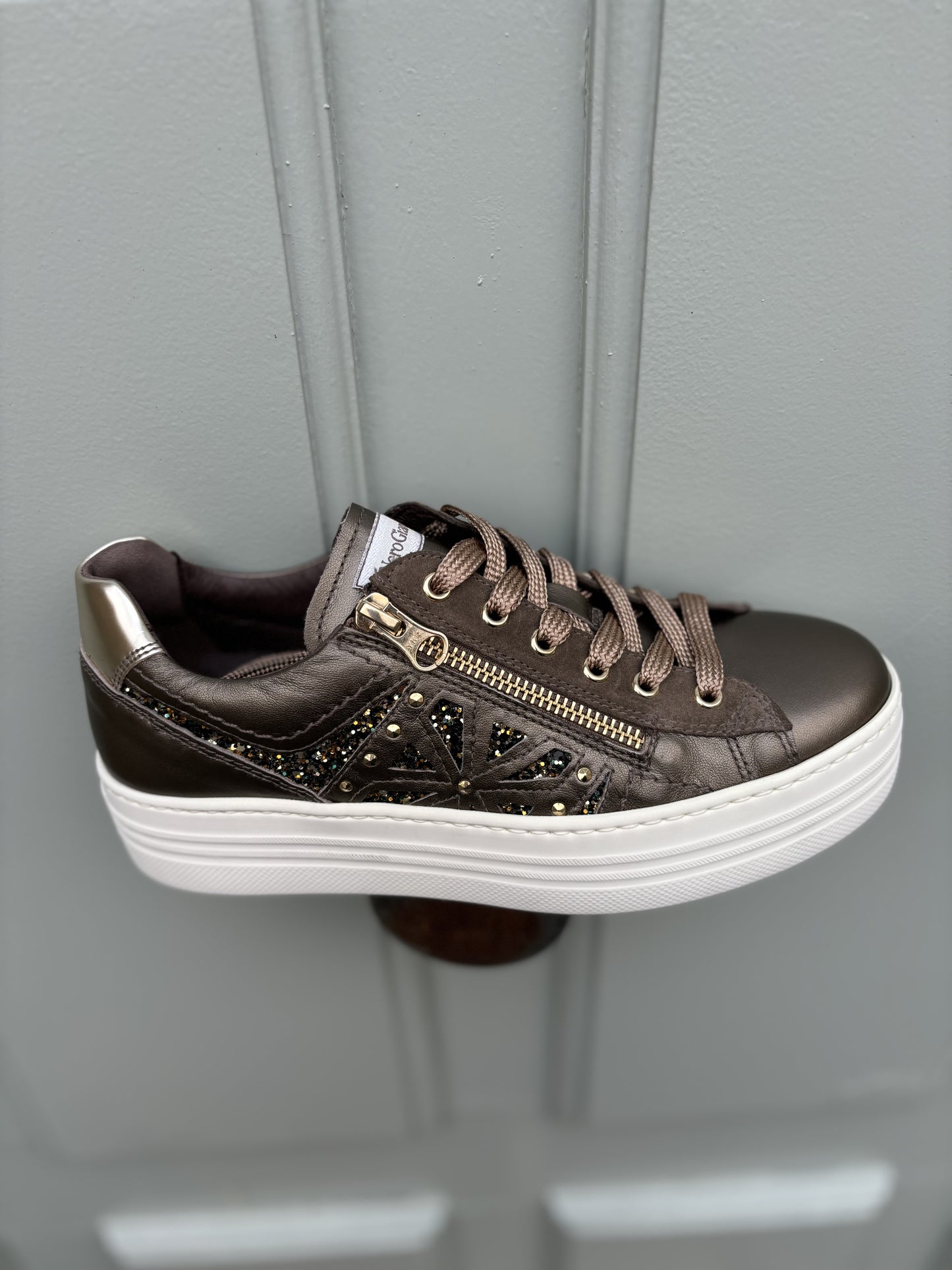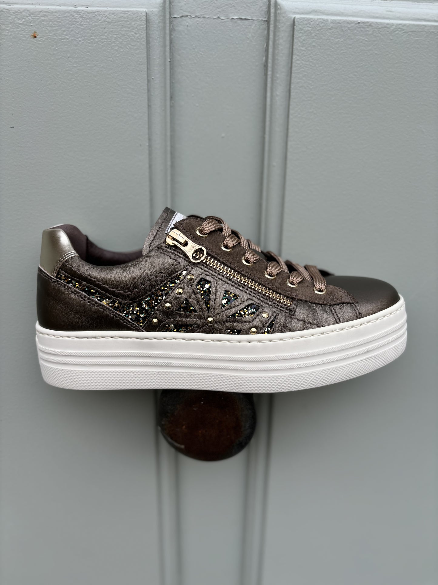 La baskets I411611D 322 mordoré à lacet avec un zip pour un enfilage plus facile. La semelle est amovible à l'intérieur, ses détails à paillettes donnerons un peu de pep's à toutes vos tenues.