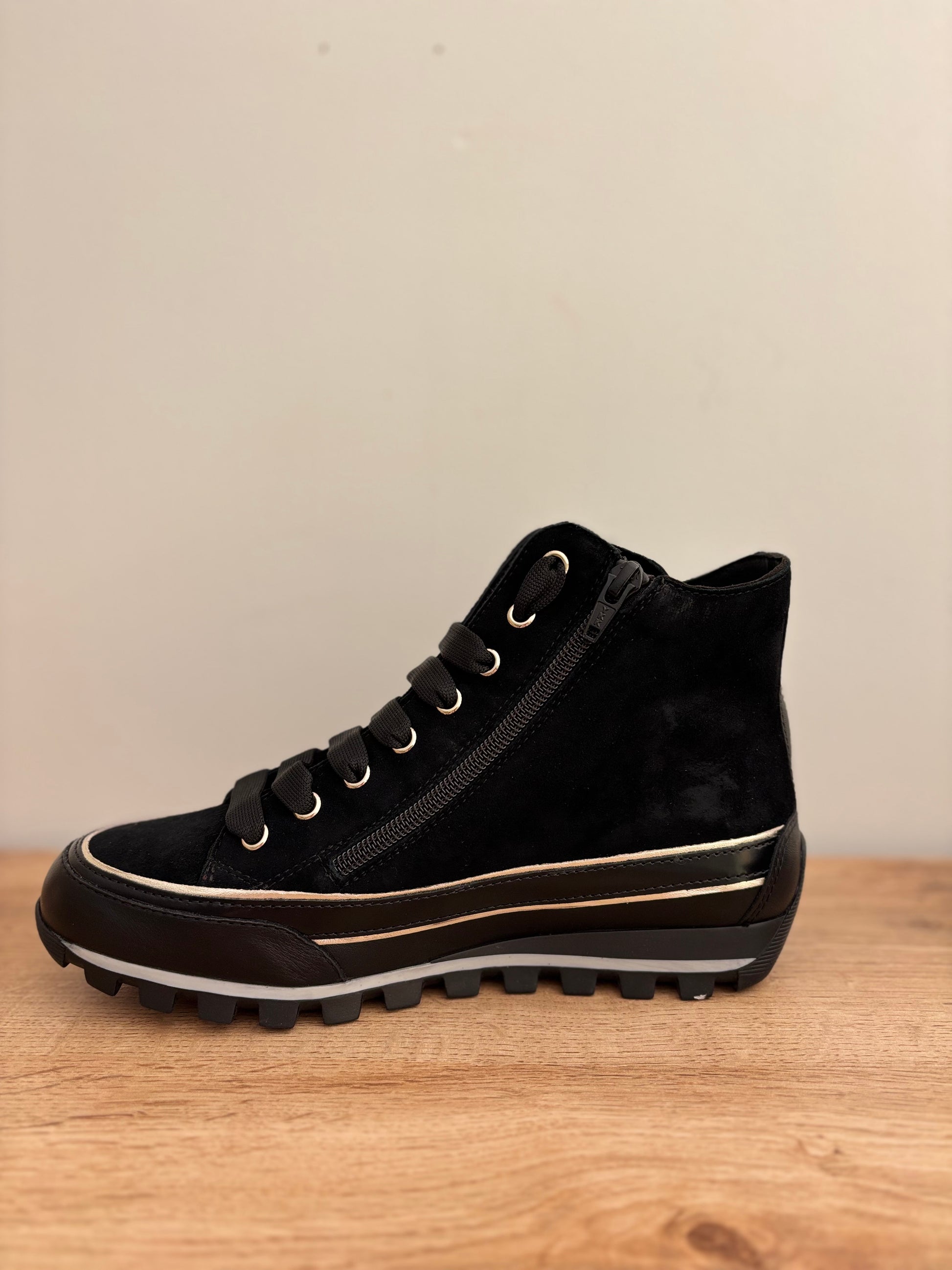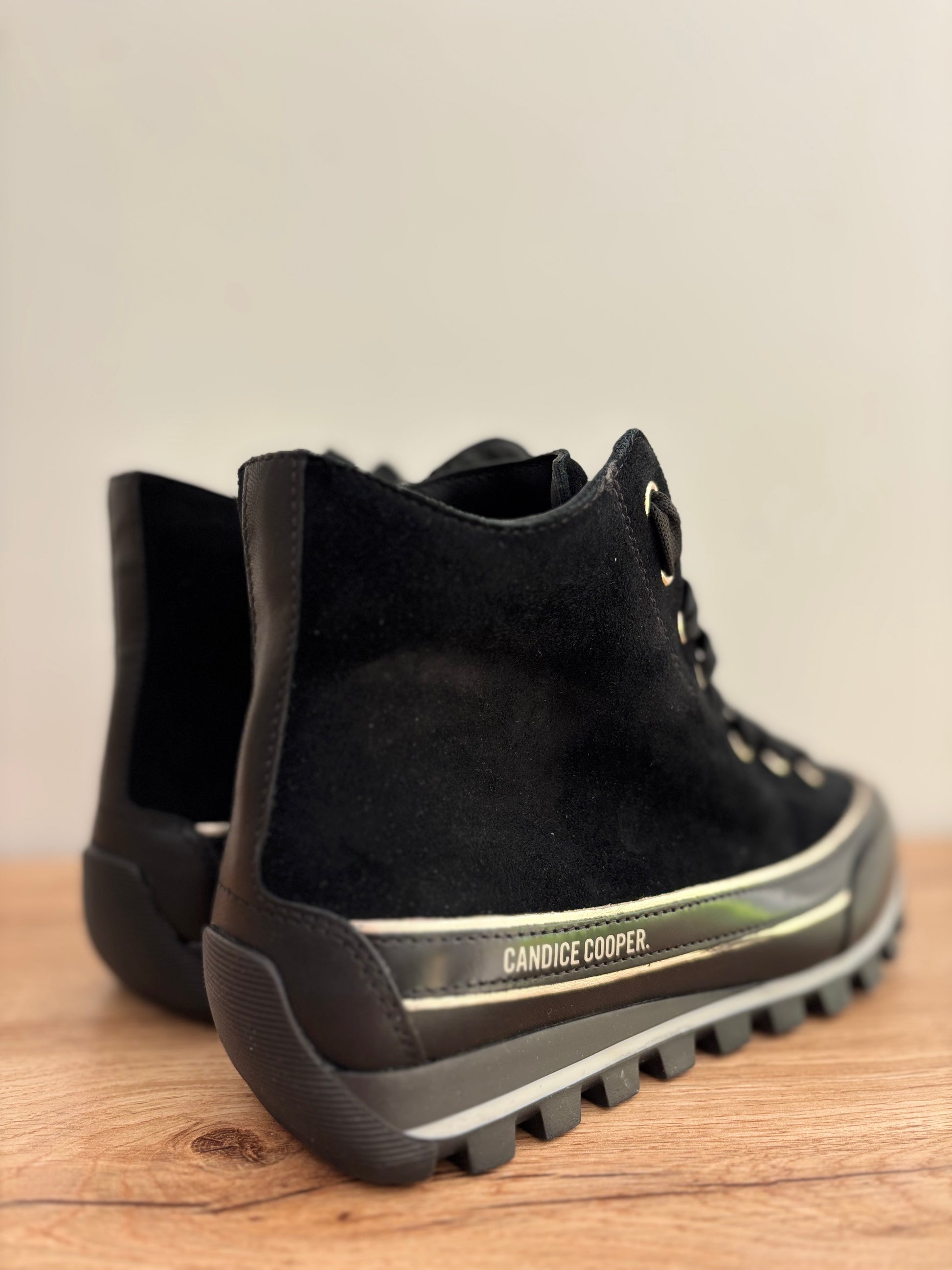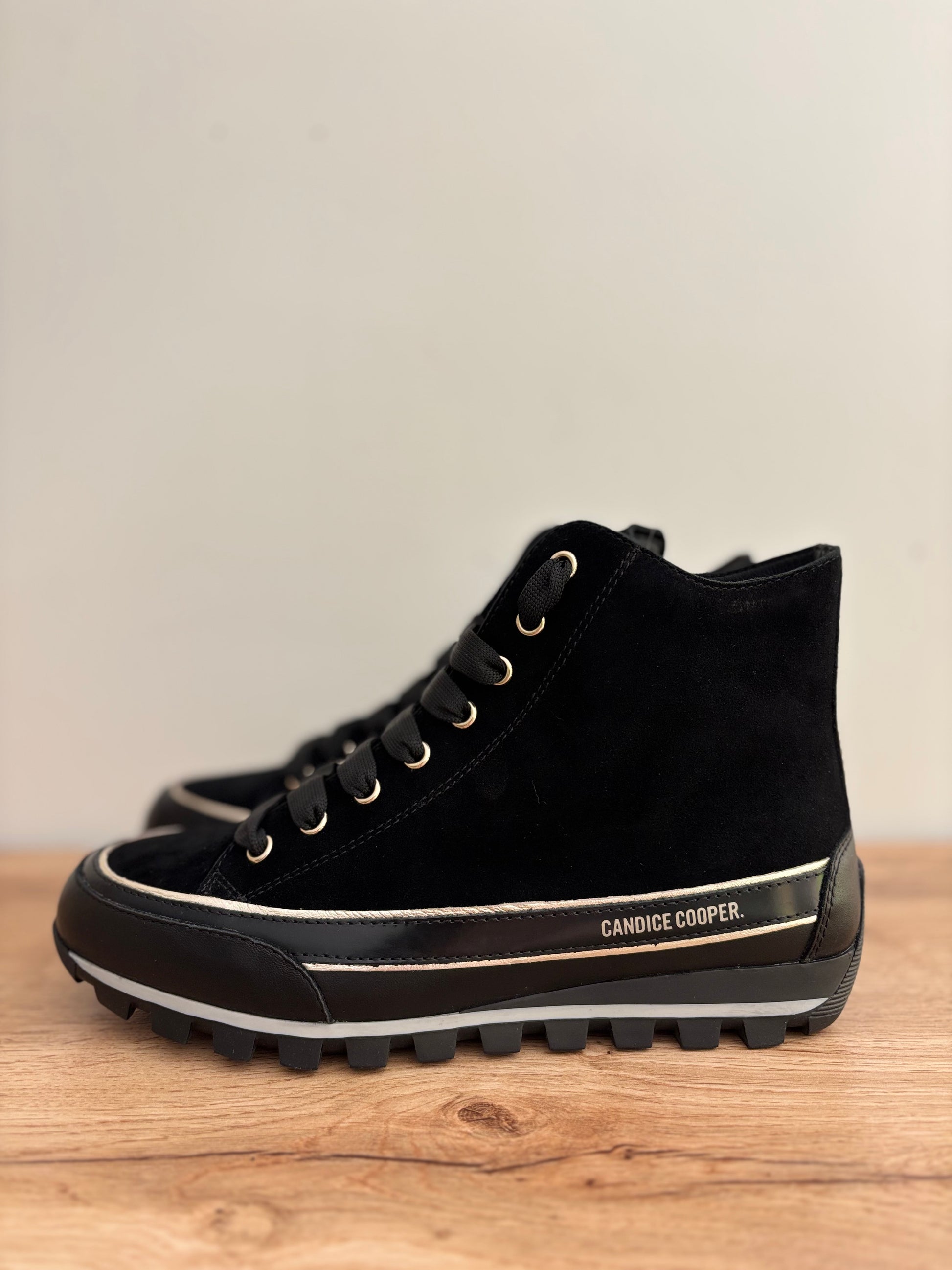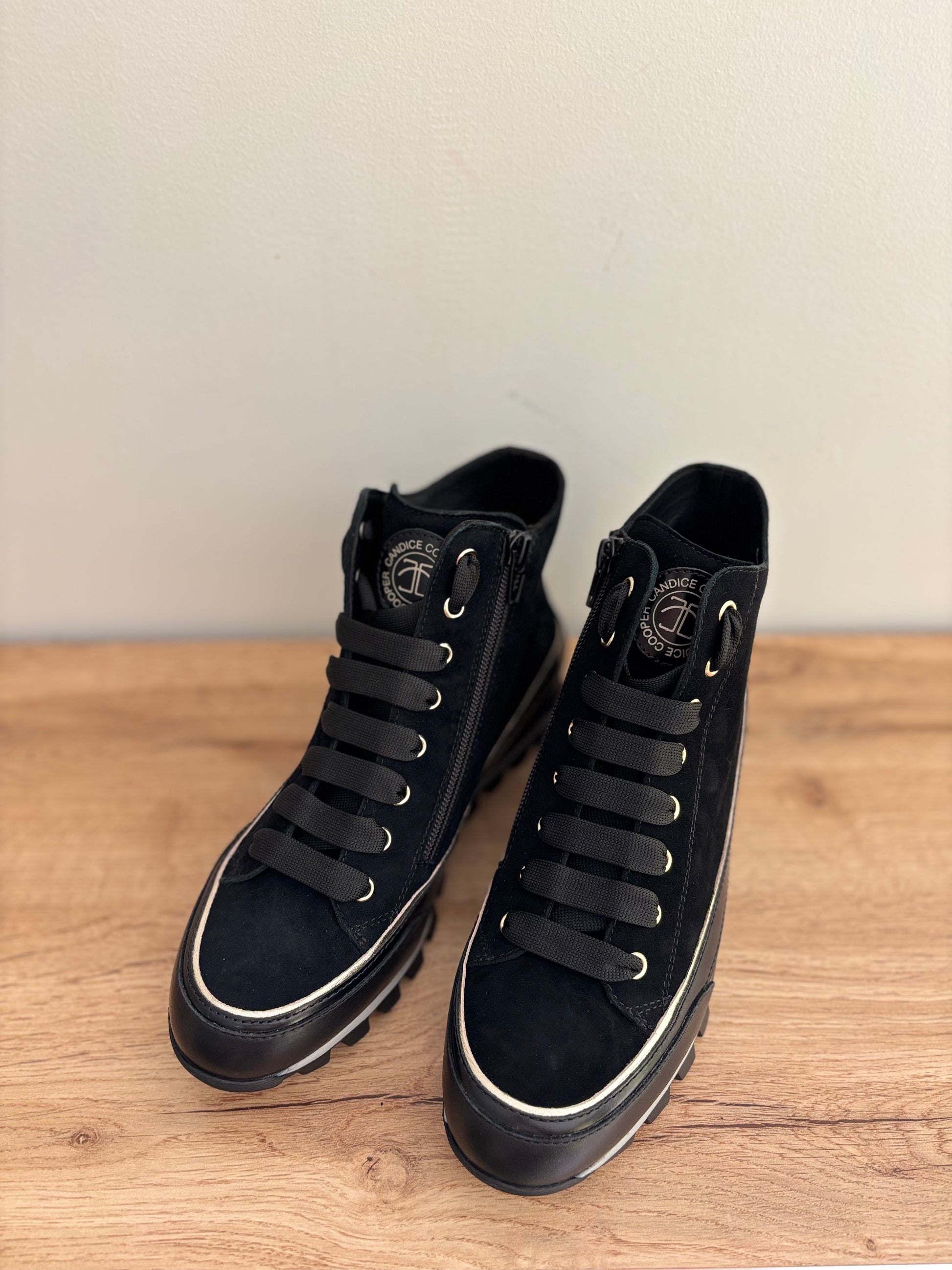 Baskets hautes JANIS STRIP PLUS CHIC en cuirs velours noir de CANDICE COOPER.