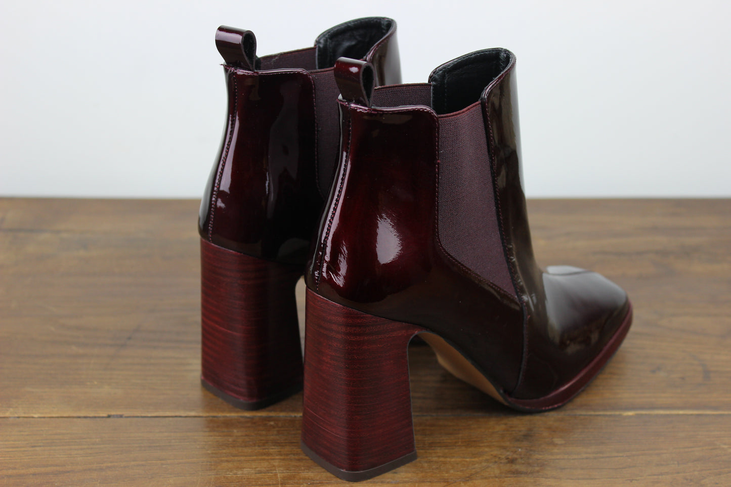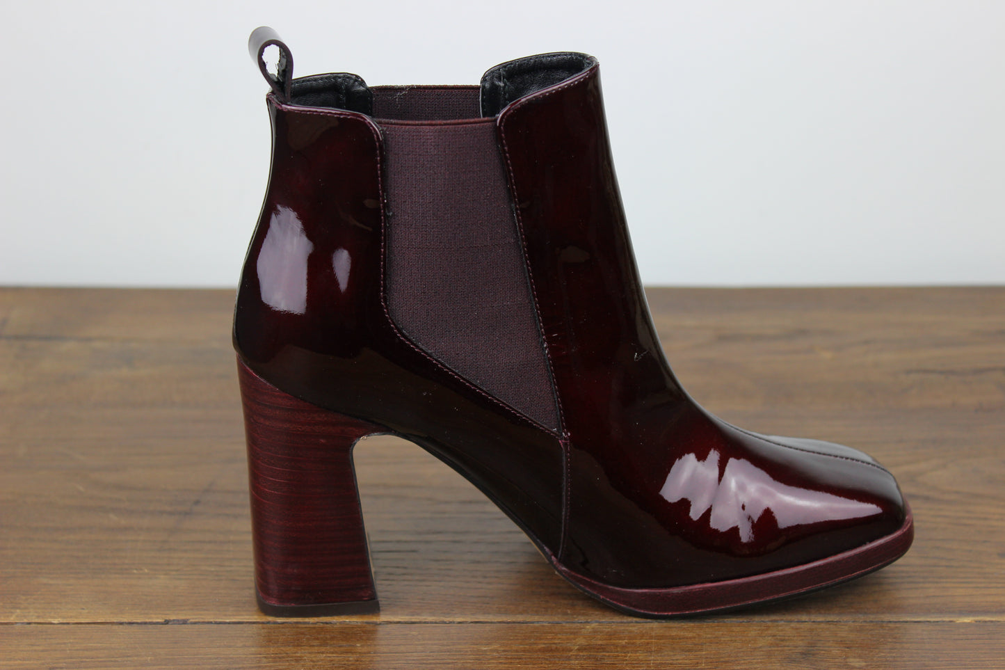 Ces bottines bordeaux sont très élégantes avec son côté vernis, son bout carré et son détail sur le dessus du pied. Son petit plus: une semelle gel à l'intérieur apporte du confort.
