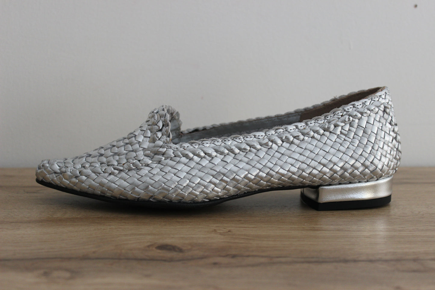 Ce mocassin tressé en cuir argent avec son bout pointu, très souple grâce à sa semelle en gomme et de fabrication française. Associez les avec un jean ou bien une petite robe fleurie.