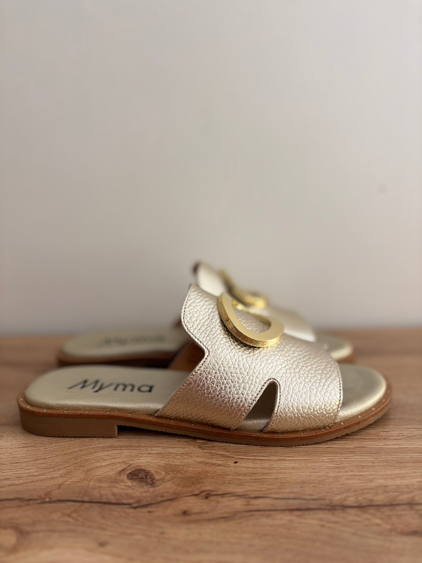 La petite mûle de l'été, ultra confort grâce à sa semelle en gel mais aussi très souple, son bijoux doré lui donne du chic. Existe également en cuir grainé noir.