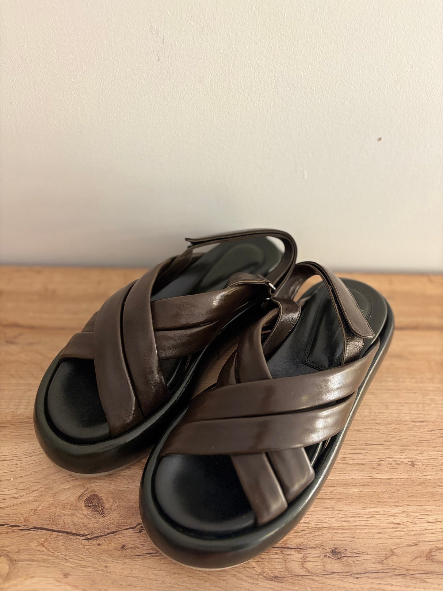 Sandale NAPPA OLIVA en cuir nappa vert de Lorenzo Masiero.