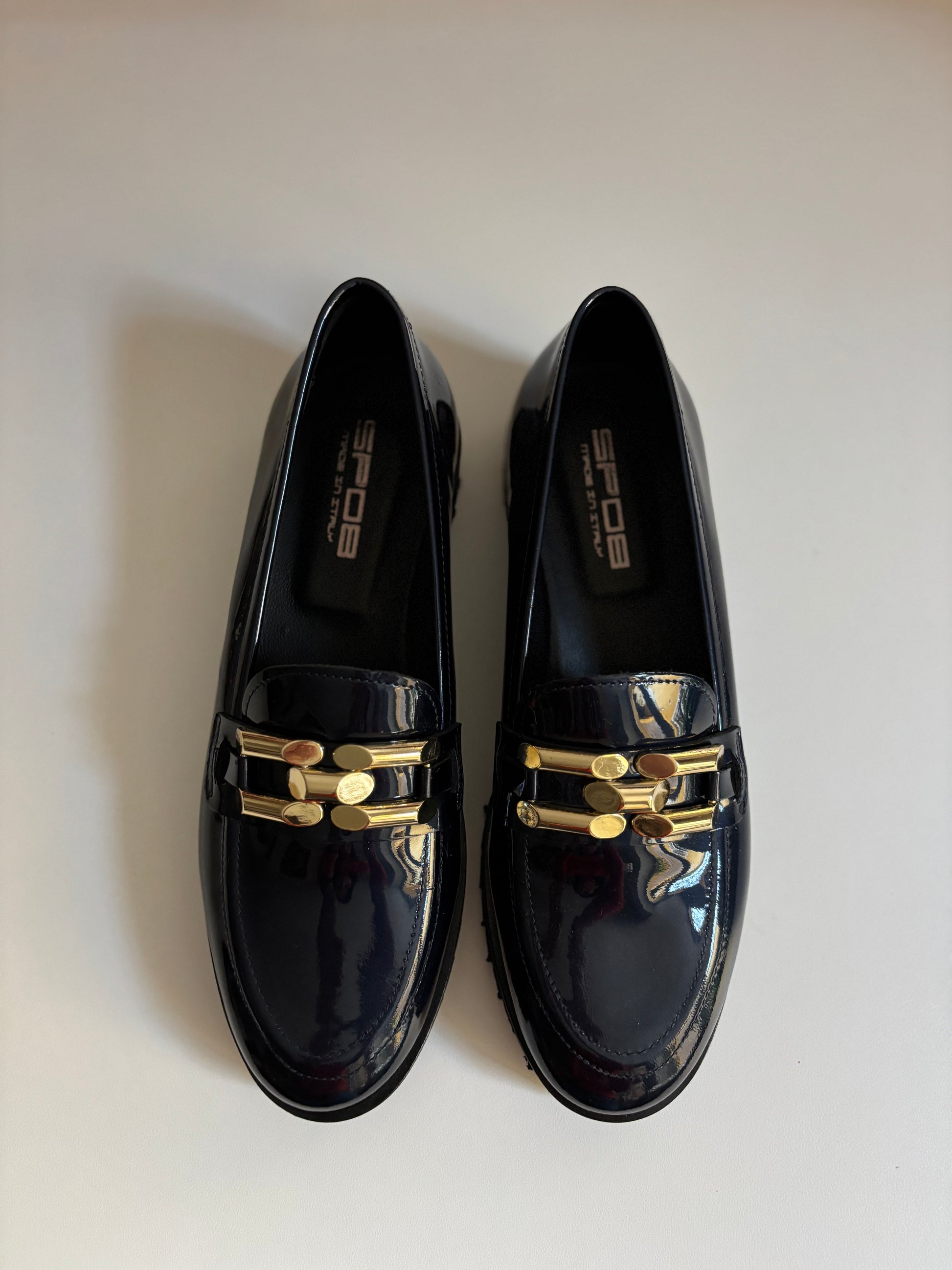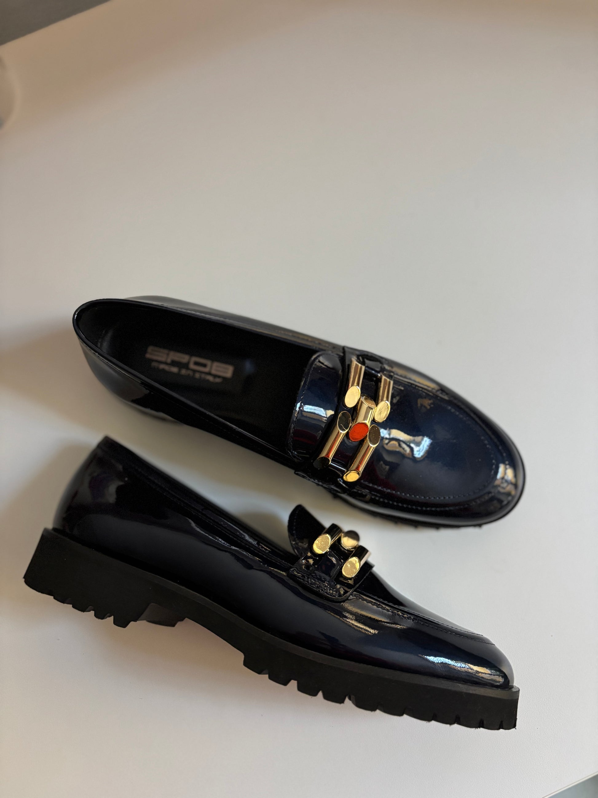 Mocassins OTTAVIA en cuir vernis bleu nuit de SPAZIOZER08.