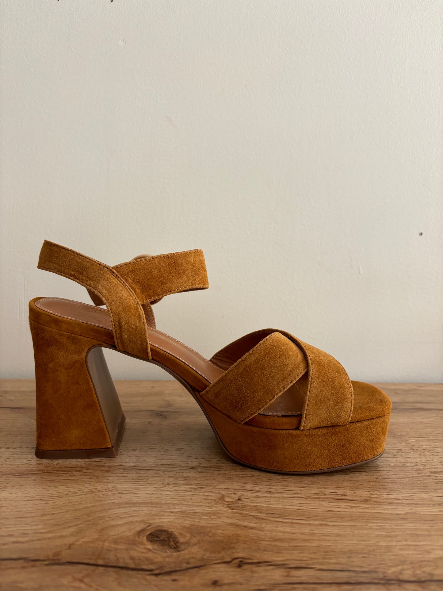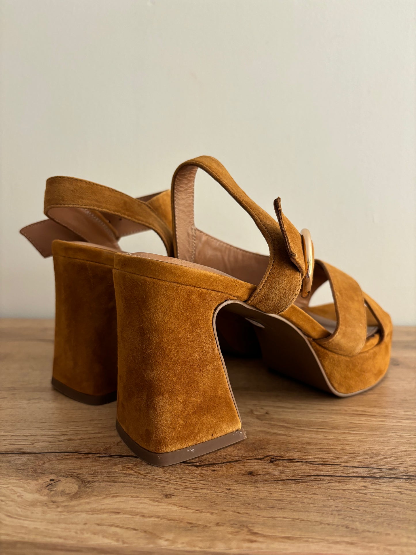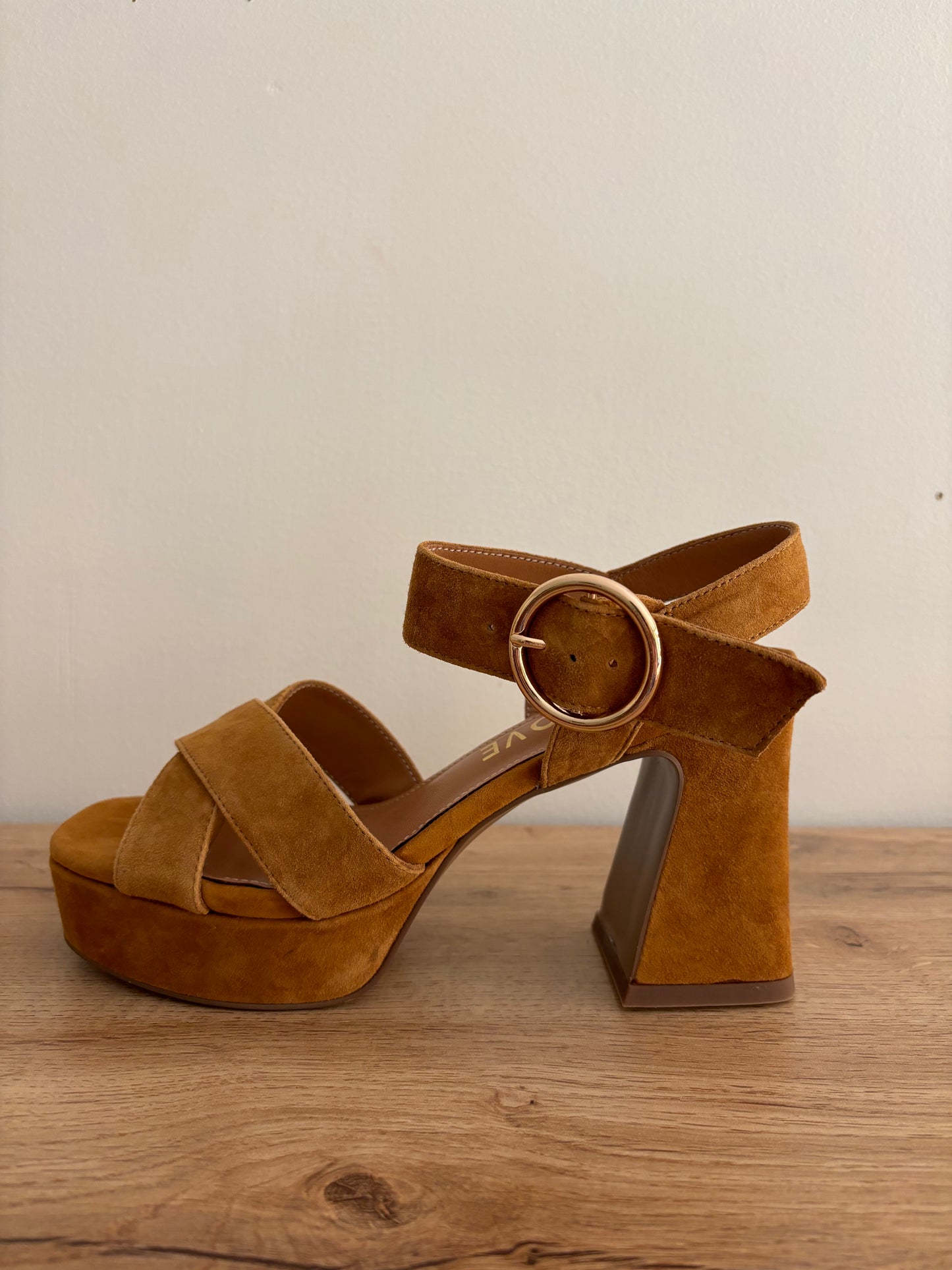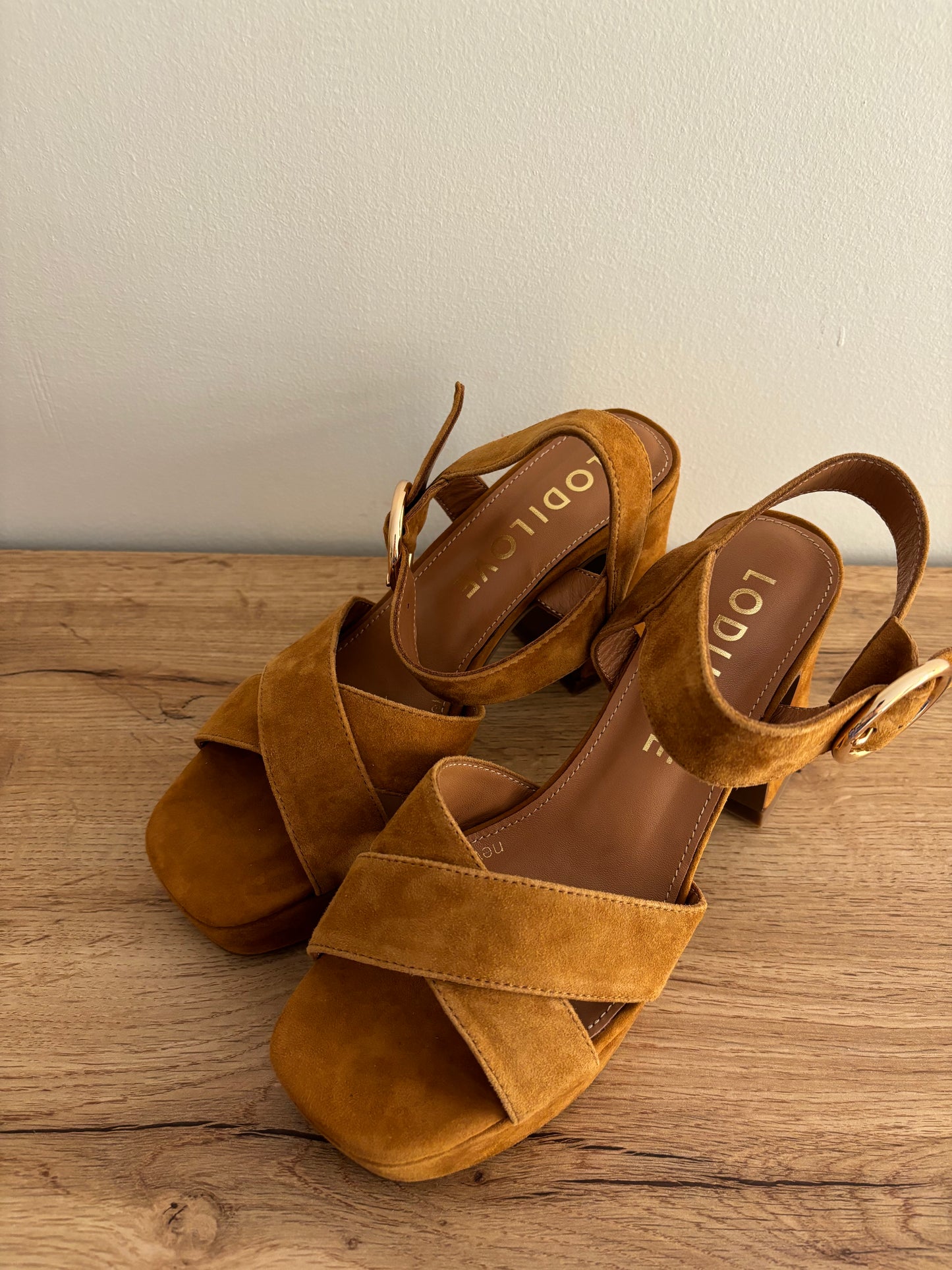 Sandale pour femme de LODILOVE en cuir nubuck camel avec une boucle doré, elle sera parfaite pour une occasion estivale. Inclut une semelle new gel pour un plus grand confort dans tous vos pas.