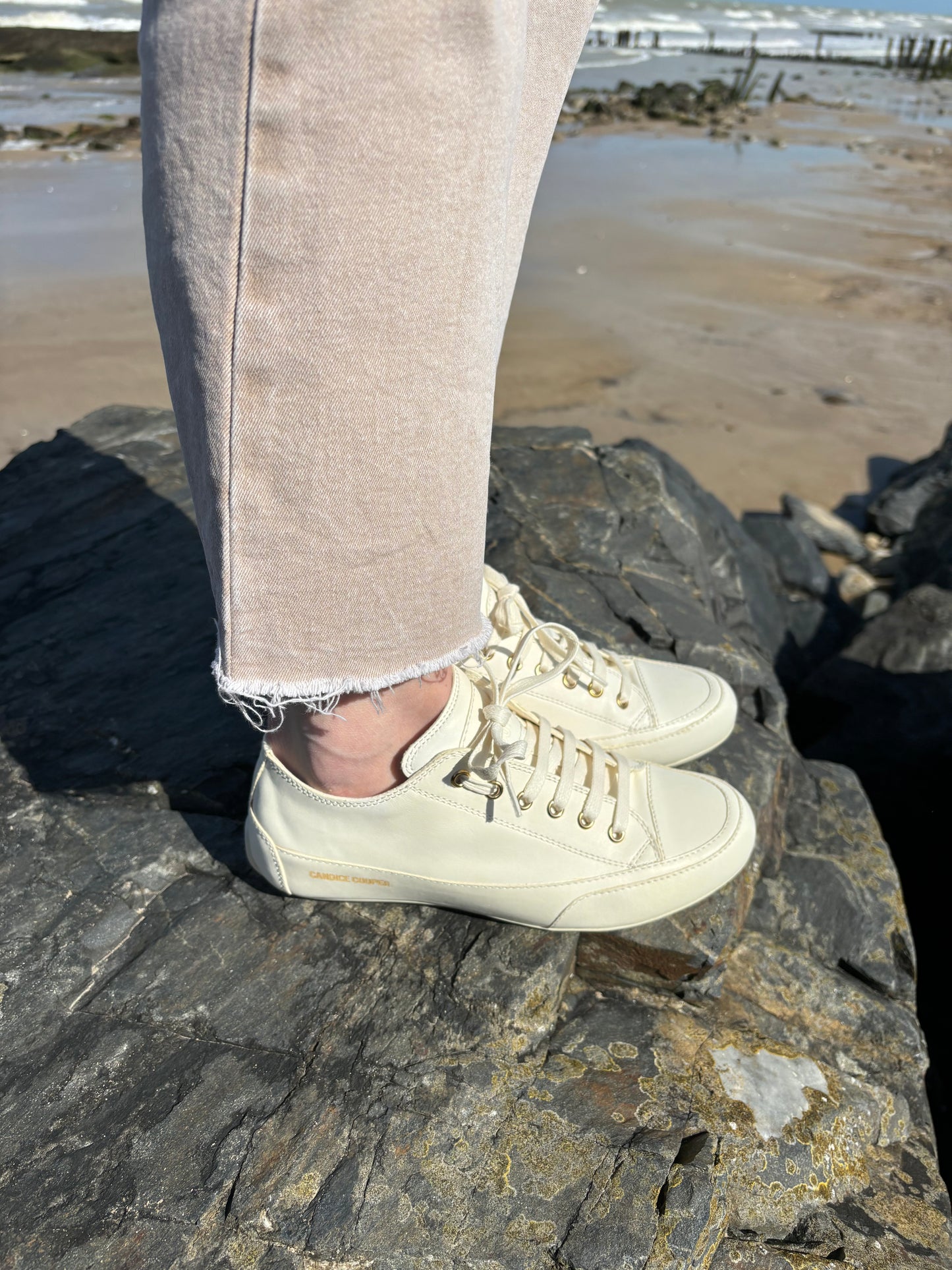 Baskets basse ROCK S en cuir nappa écru de CANDICE COOPER