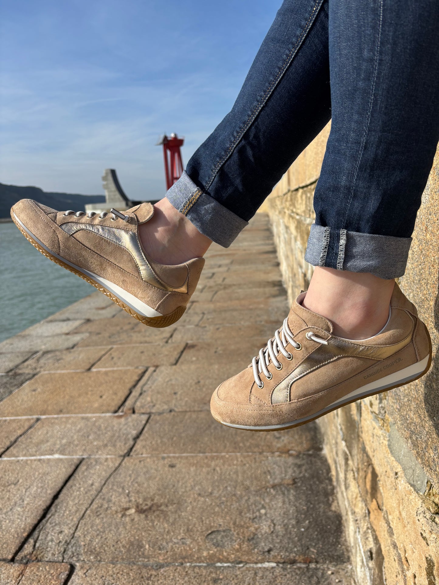 Baskets basse RUNLO FLASH en cuir cappuccino et blanc de CANDICE COOPER