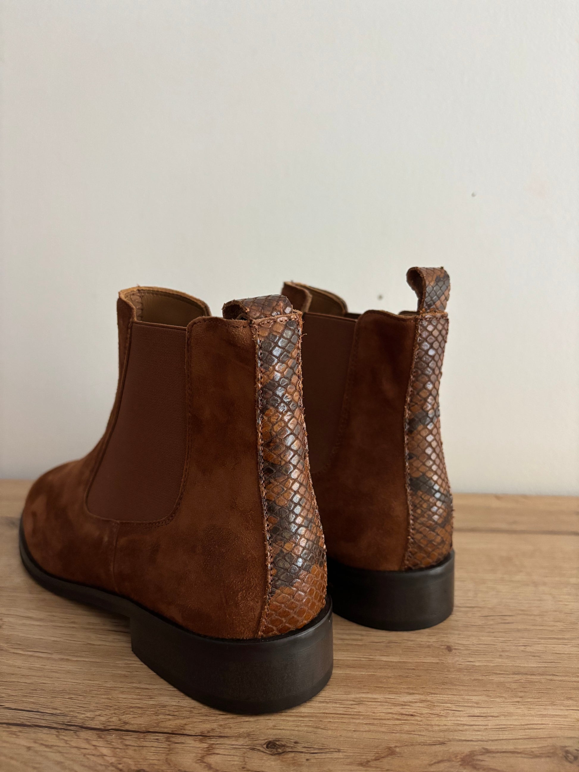 Chic et pratiques, les bottines Zellie séduisent par leur design et leur tige élastiquée pour un enfilage facile et un maintien parfait. Leur ligne sobre en font un essentiel d'automne. Confortables grâce à la semelle en cuir, elles s'associent à un jean brut ou une robe pour une allure élégante. Existe également en cuirs velours café, cuirs velours marine et cuirs naplak noir.